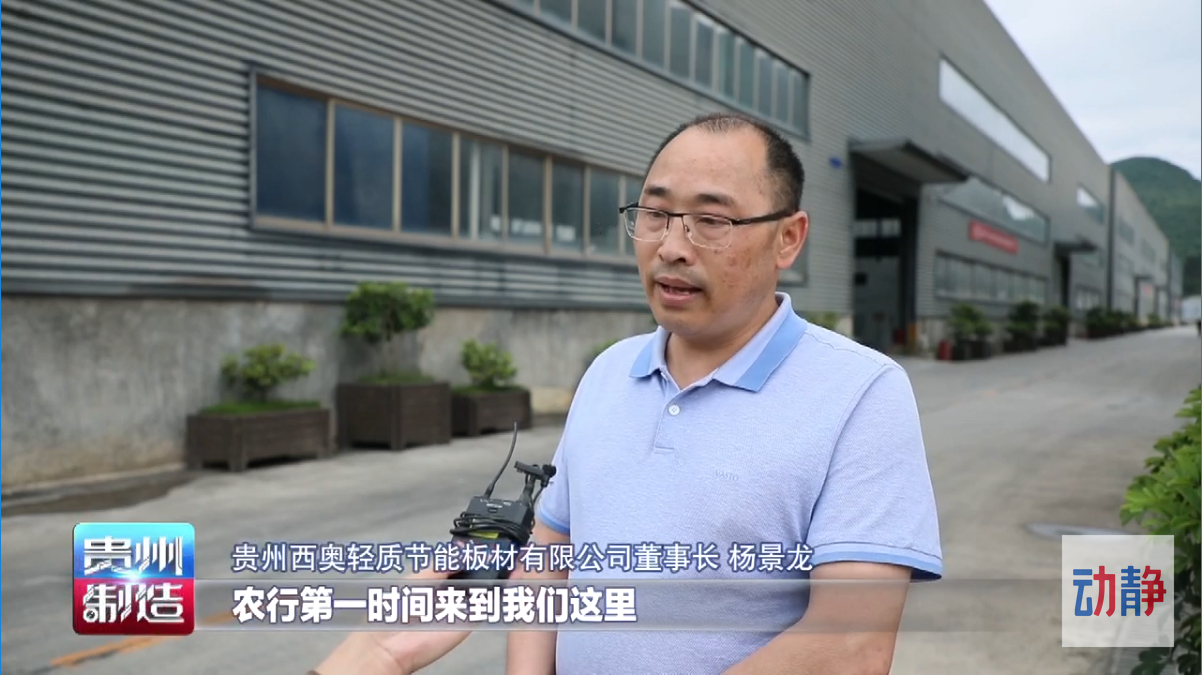 贵州西奥轻质节能板材有限公司董事长杨景龙告诉记者,农行第一时间来到我们这里,为我们伸出援手,在很短的时间内(就将)资金给我们补充到了企业,使我们的经营生产得到了解决。就目前而言,我们整个生产、整个运转都是正常的。我们非常有信心,在接下来增大我们的产能。