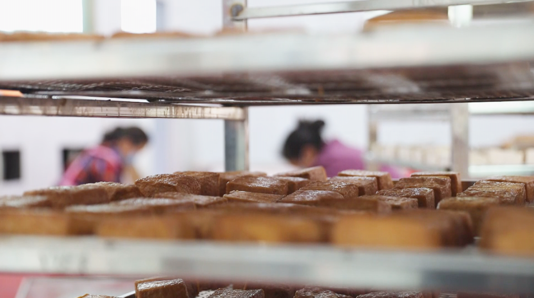 石梁乡迎红豆业加工项目于去年8月建设,12月投产,通过订单农业的方式,与当地村民签订长期购销合同,实现增收致富。目前,该厂每天要用到1600斤左右的黄豆原料,可生产豆腐近3000斤,有灰豆腐、香干豆腐、麻辣豆腐、油炸豆腐四条生产线,经过多道传统工序制出的豆腐口感细腻,远近闻名。