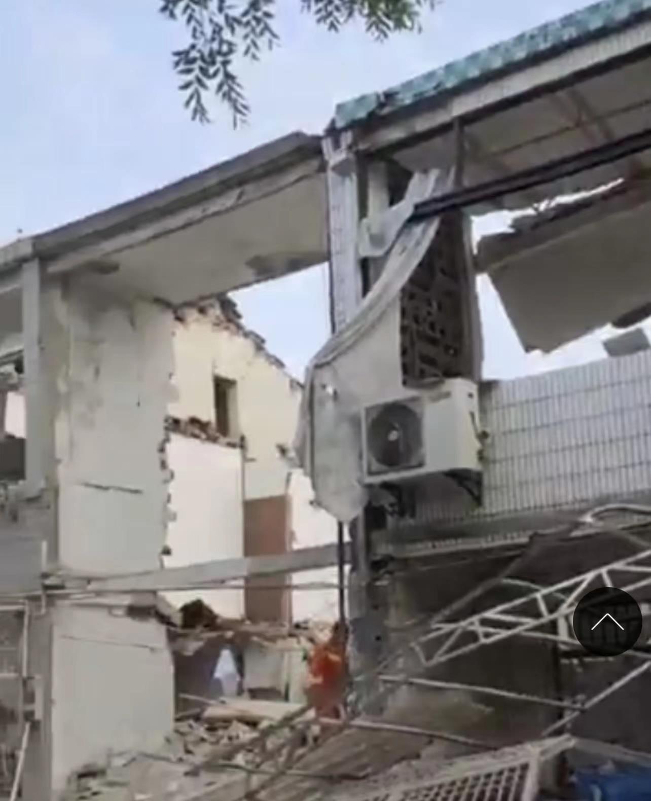 现场照片显示,两层民房的主体结构严重受损。现场一片狼藉,消防人员正在进行救援。目前无锡相关部门回应表示,具体情况以官方通报为准,事故原因还在调查中。
