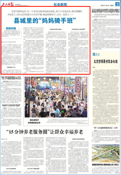 在该县的美团站点,有一个由20名女外卖员组成的骑手班组,其中17位是母亲,因此被称作“妈妈骑手班”。在成为骑手前,她们曾经是工厂工人、美发师、店员、小商贩等,辗转多地务工,而成为妈妈后,她们希望有一份既能照顾家庭,工作时间灵活,又有一定收入的工作,骑手符合这三个条件。