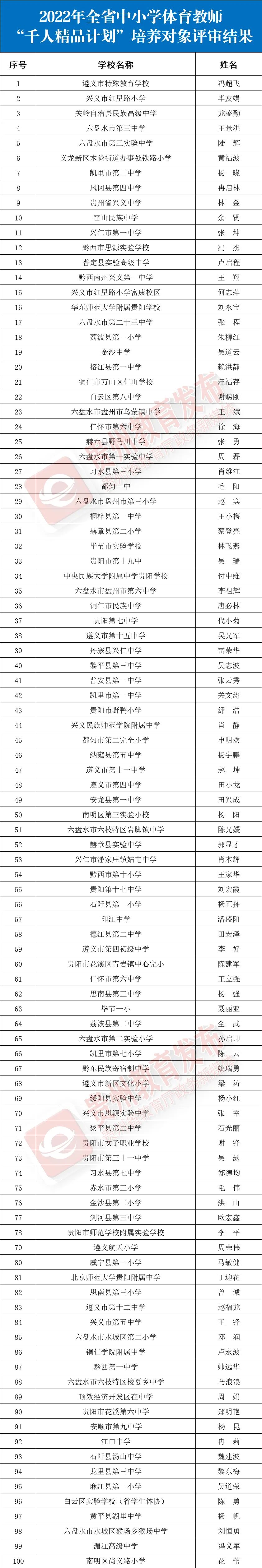 近日,2022年贵州省中小学体育教师“千人精品计划”培养对象评审工作结束,现将评审结果进行公示,公示时间为2022年6月20日至6月22日。