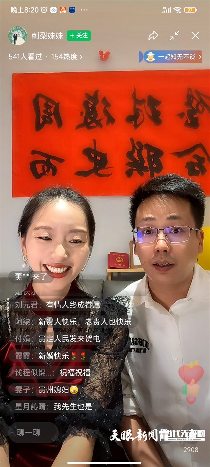 9月13日晚8点18分,贵阳市云岩区未来方舟F10组团,一场简单而温馨的特殊婚礼通过视频直播如期而至,迎来了亲人、朋友、邻居及广大网友的围观和祝福。