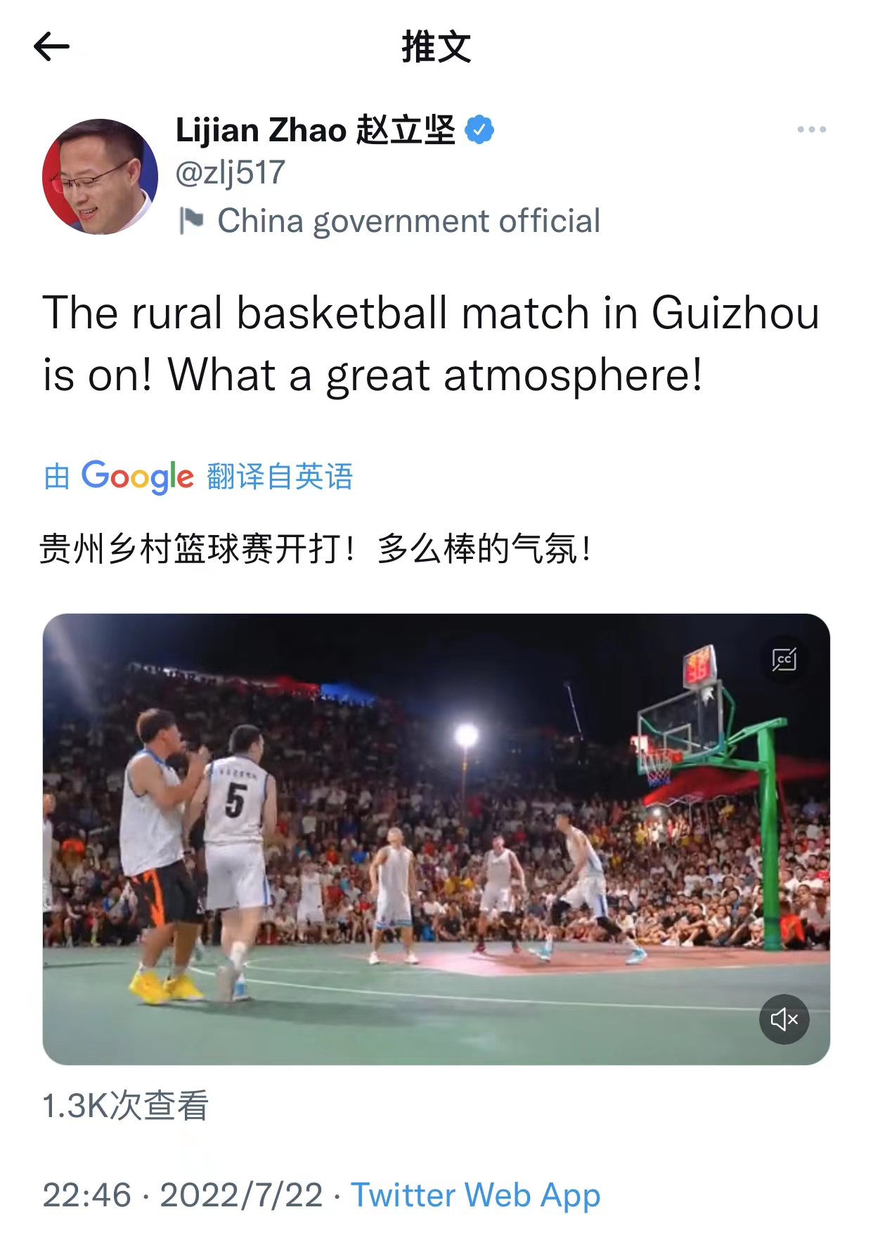 A basketball game in Taipan Township, Taijiang County, Qiandongnan Prefecture, Guizhou Province recently has become popular on the Internet. There were still thousands of spectators gathered on the field at 2 a.m to watch the exciting and intense basketball game. Even Zhao Lijian, a spokesman for the Ministry of Foreign Affairs, specifically "liked" it.