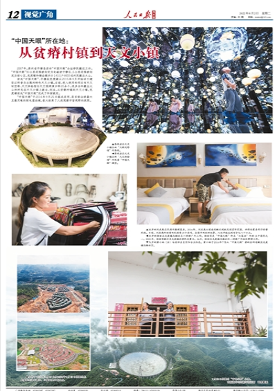 依托“中国天眼”,平塘县克度镇从2015年9月开始动工建设以科普为主题的特色天文小镇。目前,投入使用的项目有天文时空塔、天文体验馆与天文观测演示等20余个。很多当年搬出大山的村民在天文小镇上就业、创业。从贫瘠村镇到天文小镇,克度镇依托“中国天眼”完成了华丽蜕变。