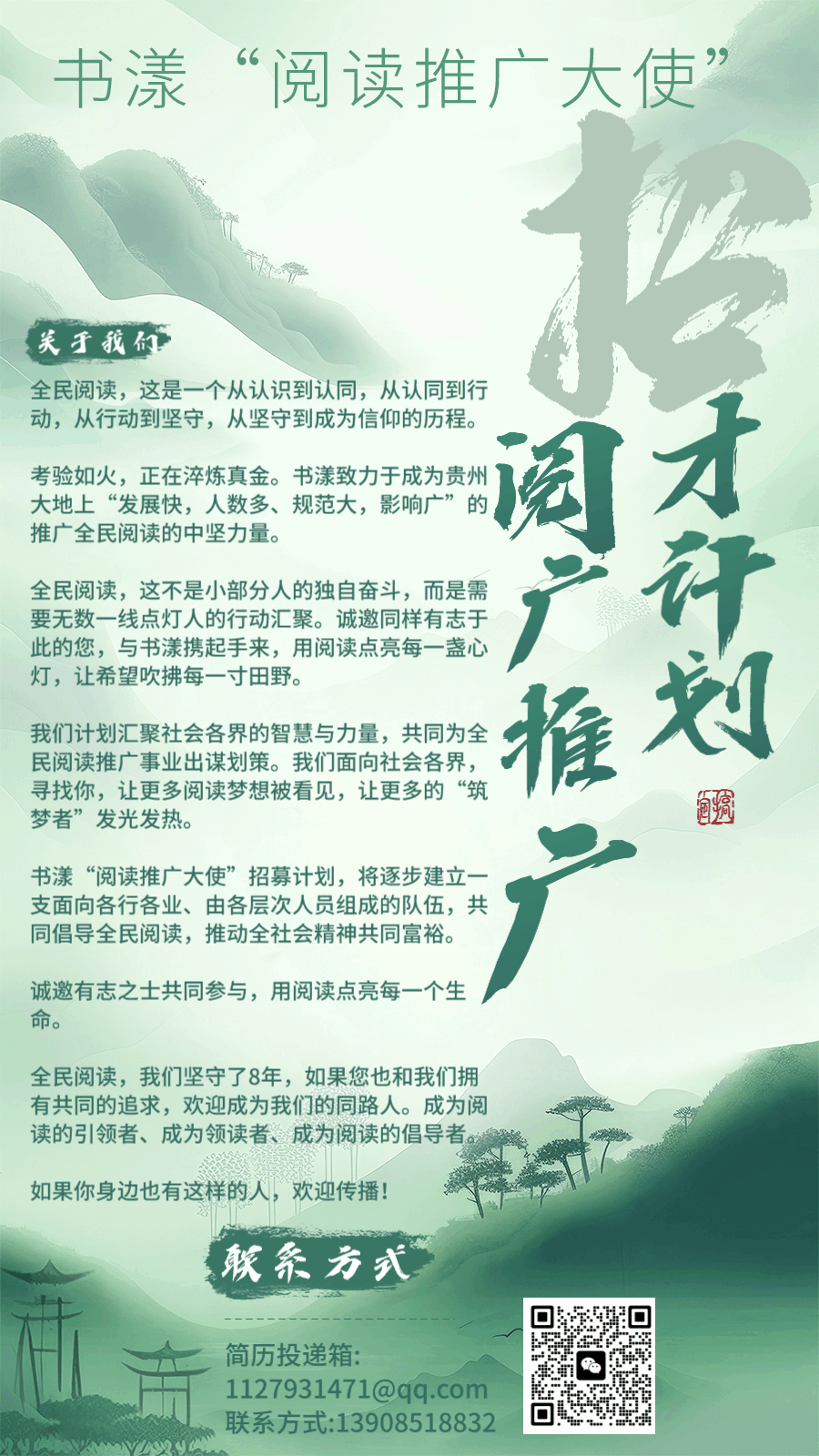 书漾工作室致力于宣传“书香理念”,广播“读书种子”,推进“书香校园”建设,推动“全民阅读”进程,大力推动读书活动在贵州各地广泛展开。