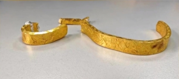 上海市公安局普陀分局长寿路派出所执法办案队民警 成玺:在接到报案后,我们立即开展了侦查工作,但并未发现嫌疑人在工商部门有登记注册信息,此次售卖行为属于个人售卖行为,同时,警方也查证,犯罪嫌疑人所提供的发货地址是伪造的虚拟地址。在本案中,犯罪嫌疑人通过某电商平台寻得一商户,制作了购买黄金所需的4件套,即购物袋、质保凭证、出货单以及(手镯)品名吊牌,再加上他通过平台制作了一张假发票,也是按照当天的市场金价去做的。本案被害人购买的这款手镯,总克重共计45.11克,含金量是10克,含银量是35克。一般的检测手法根本辨别不出来,只有国家相关的鉴定机构才能辨别真假。