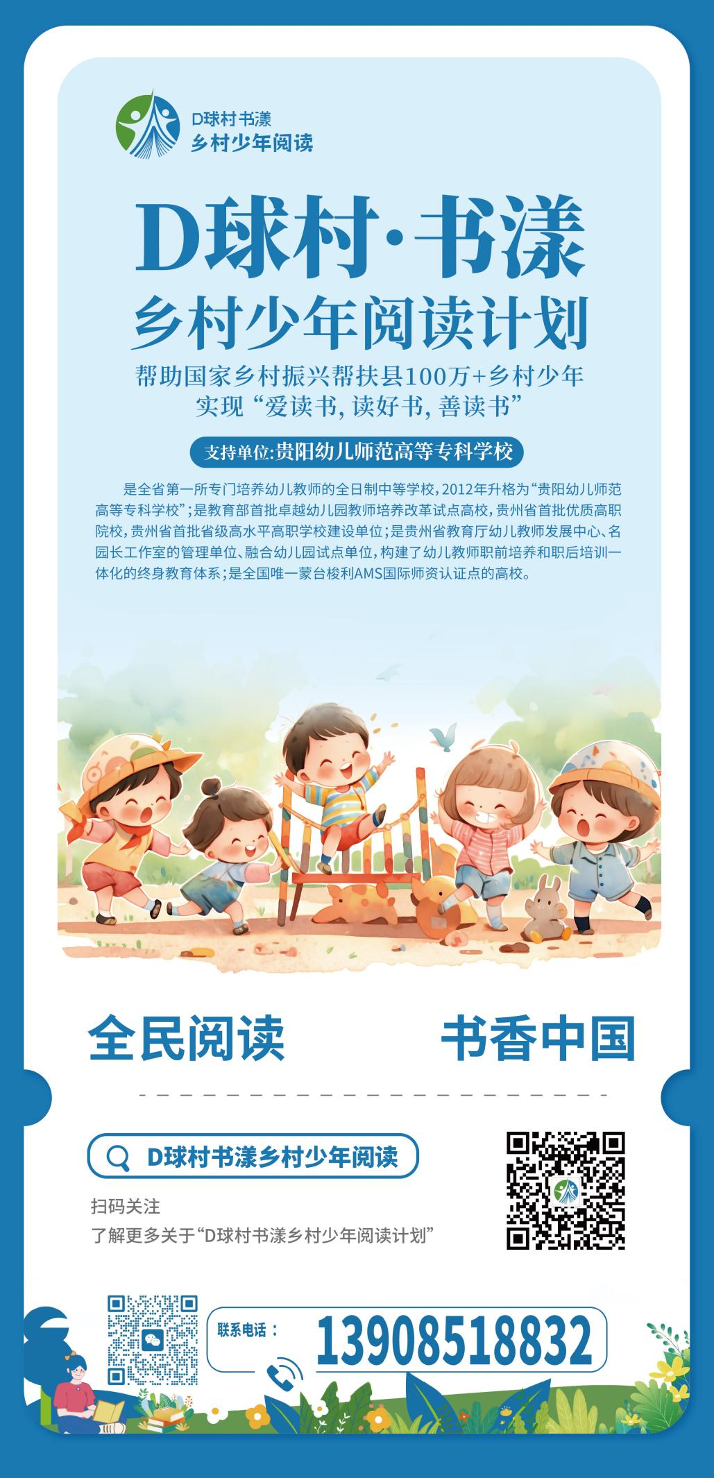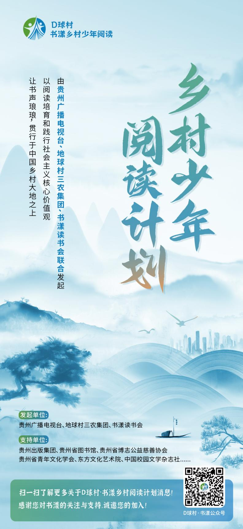 即将在3月启动的“D球村·书漾乡村少年阅读计划”由贵州广播电视台、地球村三农集团、书漾读书会联合发起,计划年内在全国832个帮扶县内选取100个帮扶县作为试点,免费为该县5000名乡村少年实现快乐阅读。
