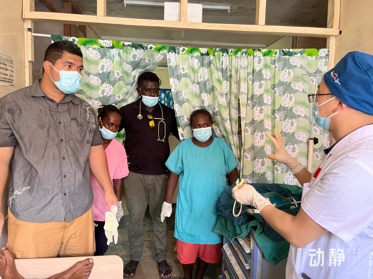 “由于受西方国家信息的误导,所国群众对中国医疗队的认识并不客观。所以我们在当地开展工作,有一项重要任务就是:要用实际行动讲好中国故事。”第2批援所罗门群岛中国医疗队队长、贵州医科大学附属医院副院长黄海说:“第一台泌尿外科手术,第一台溶栓治疗工作救活了病人,这是其他西方国家医生没有做过的事,中国医生把他们镇住了。我们不仅授人予鱼,还要授人以渔,因此,我们帮助当地建立一支“带不走”的医疗队,提升他们的医疗水平”。