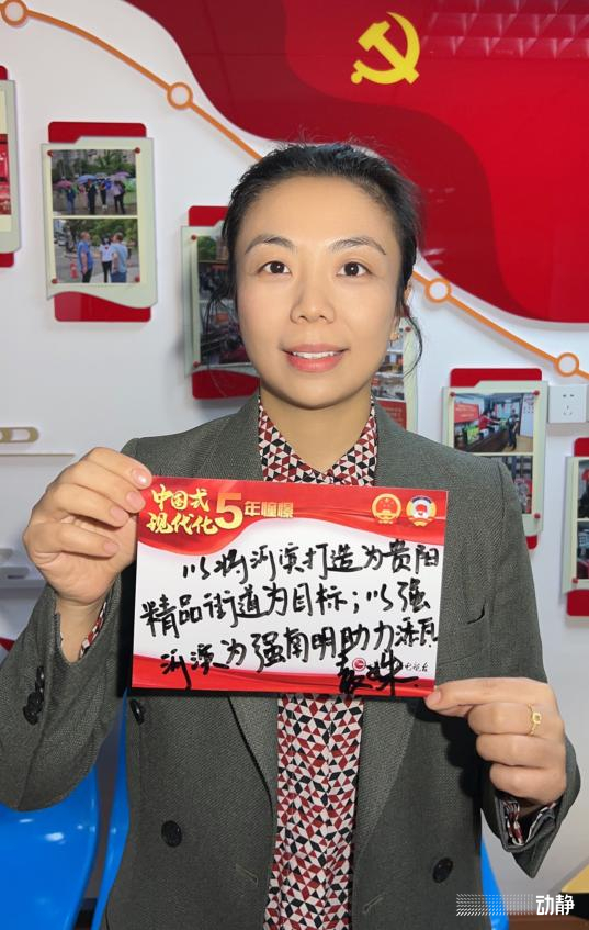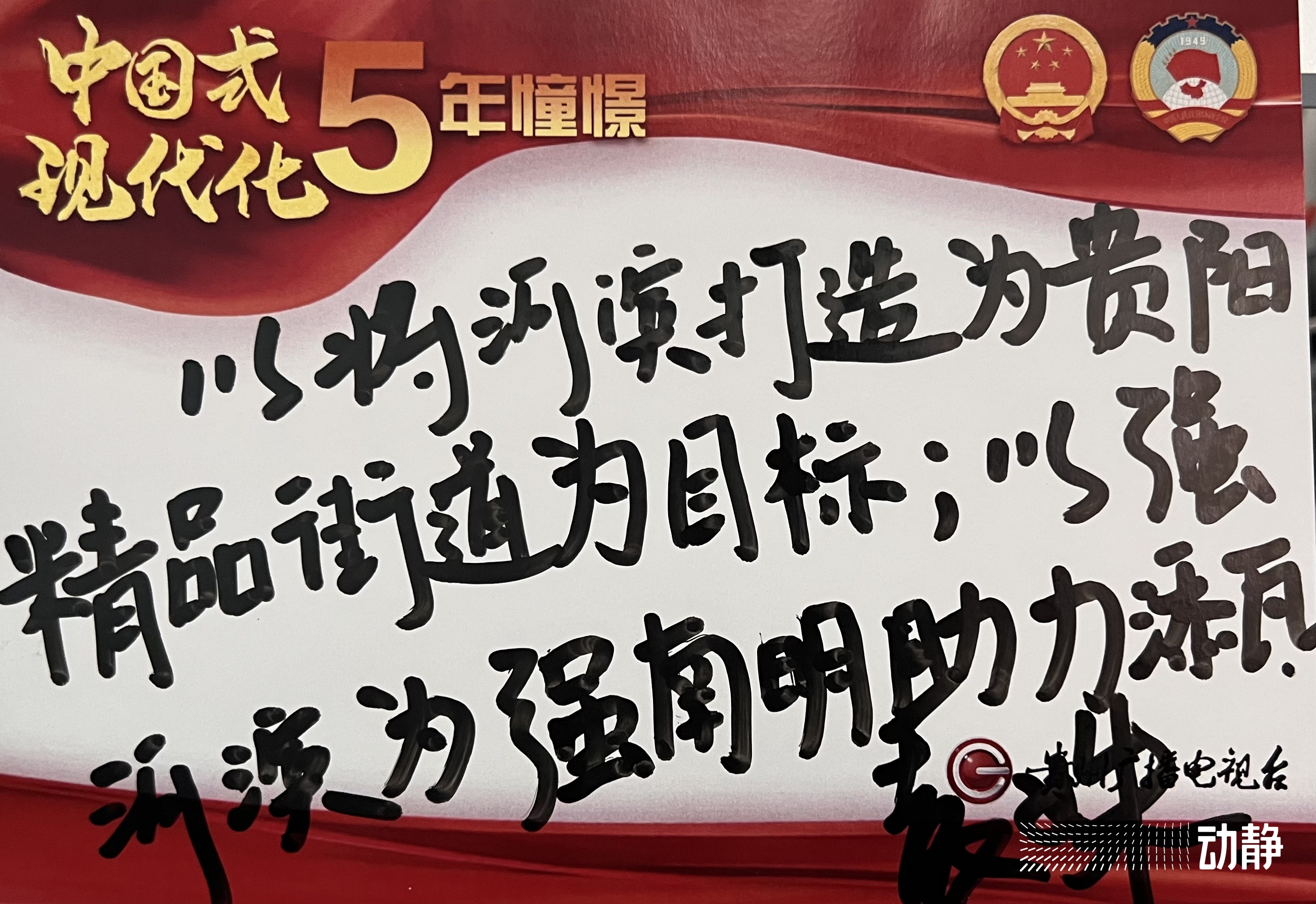 “去年我们的地区生产总值是达到了1005.43亿,很多重点项目在我们基层街道的参与当中,除了道路建设以外,还有很多新建项目、楼宇经济也在蓬勃发展。我们在服务群众、企业的过程中,也切身体会到了老百姓对咱们党、咱们国家政策的感恩感谢,还是挺有收获的。”袁姝告诉记者。当提到对未来五年的憧憬时,她写下了“以将河滨打造为贵阳精品街道为目标,以强河滨为强南明助力填瓦。”