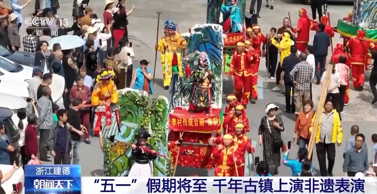 在浙江建德的千年古镇——大慈岩镇,抬阁、舞狮、虾灯等十几种非遗项目吸引了众多游客。