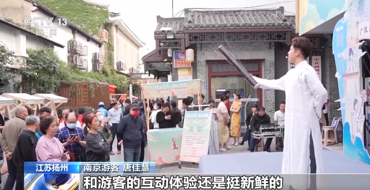 在江苏扬州,非遗集市等文旅活动也热闹开启,展示扬州非遗,丰富游客的旅游体验。