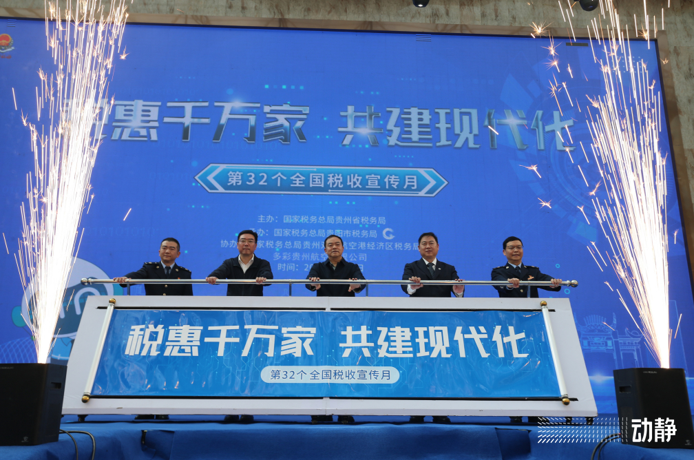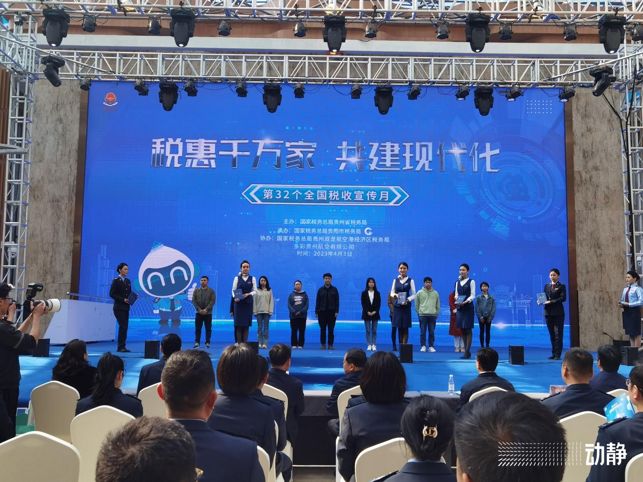 今天(4月3日),由贵州省、贵阳市、双龙航空港经济区三级税务机关联动多彩贵州航空有限公司共同开展,以“税惠千万家 共建现代化”为主题的第32个全国税收宣传月系列活动在贵阳举行。