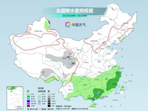 3月29日至3月31日,我国将维持北晴南雨的天气格局,较强降雨主要集中在江南南部及华南等地,局地有大雨。而北方大部地区阳光将持续在线,由于雨雪稀少,北方大部升温继续,20℃线将迅速北扩,东北多地暖如5月。但4月初将有一股较强冷空气到场,届时,部分地区降温幅度可达10℃,气温波动较大,公众需及时添衣保暖。