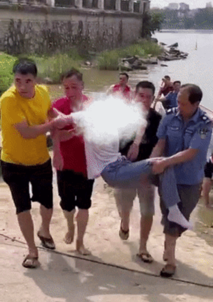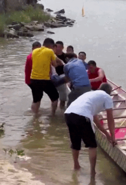 “快救人!”胡金有向队友们大喊,大家迅速反应,一同跳上停靠在岸边的一条龙舟,拿出比赛的劲头,快速划向约摸60多米远的落水者。赶到近处时,又很专业地放缓速度,慢慢靠近,以免对落水者造成二次伤害。