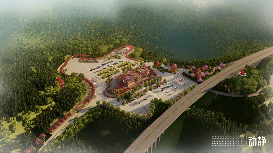 重遵扩容项目“长征国家文化公园·大娄山服务区”位于桐梓县新站镇,是兰州至海口国家高速公路重庆至遵义段(贵州境)扩容工程项目中从重庆进入贵州的第1个服务区。该服务区面朝大娄山山脉,占地面积135亩,由综合楼、观海餐厅、司机之家(含住宿)、维修车间、设备用房5栋建筑物组成,建筑总面积为11335平方米。服务区主体建筑为2层、高12.65米的全框架结构建筑。