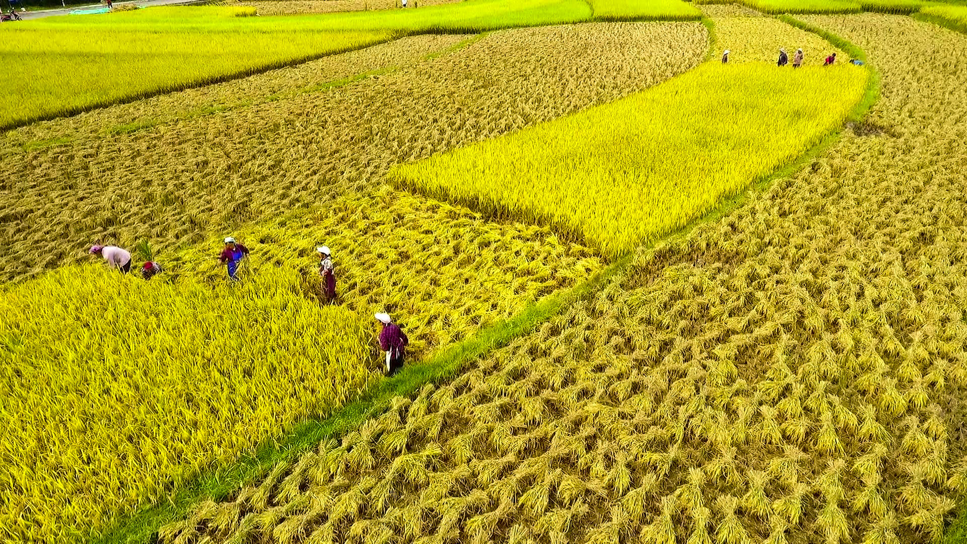 这段时间,秋高气爽,正是水稻收割的好时机,田间到处是一派繁忙场景。割稻子、打谷子、晾晒、装袋、上车,村民们有说有笑,个个脸上流露出丰收的喜悦。