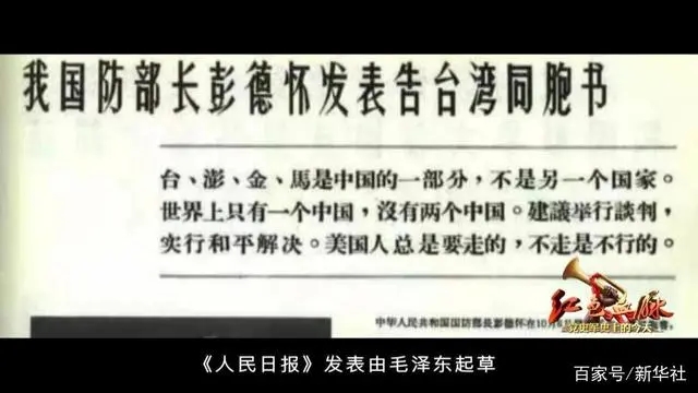 ▲1958年10月6日,《人民日报》发表由毛泽东起草、以国防部长彭德怀名义发布的《告台湾同胞书》。