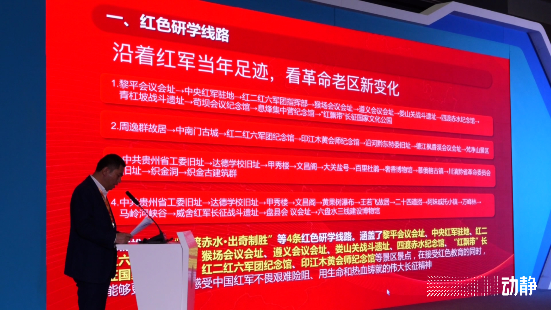 贵州省文化旅游科技有限公司董事长黄宗文介绍,红飘带项目两大主要产品为《红飘带·伟大征程》和《红飘带·多彩飞越》,“前者以长征为主题的全景式呈现,后者则汇聚了我们贵州19个景点,观众可以在空中翱翔贵州,看到我们最美的壮美山河。目前我们已经和国内的携程、美团这些大平台签约了,这一次更关注的是线下的上海、长三角这一部分区域的旅行社。”