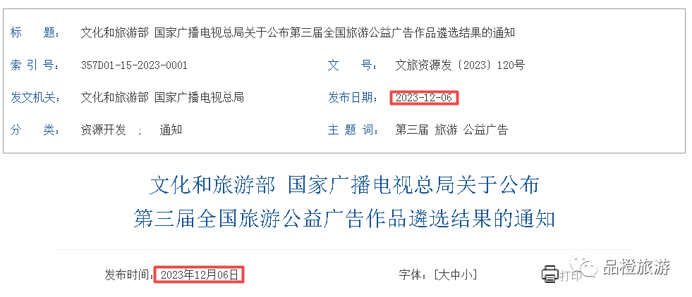 12月6日,文化和旅游部 国家广播电视总局发布《关于公布第三届全国旅游公益广告作品遴选结果的通知》,通知称,为进一步宣传推广旅游公益理念,普及和提升全社会旅游意识,推动旅游业高质量发展,文化和旅游部、国家广播电视总局联合开展第三届全国旅游公益广告作品遴选暨展播活动,得到社会各界积极响应。日前,经专家评委审核,遴选出广播类、电视类、脚本类优秀作品69部。贵州广播电视台全媒体新闻中心作品《旅游公益广告 风物贵州篇》成功入围。