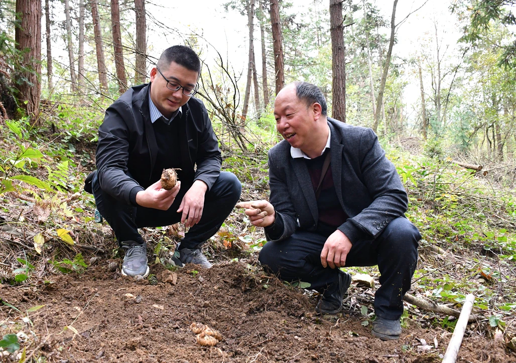 初冬时节,在遵义市道真自治县阳溪镇阳溪社区石垭口林下中药材种植示范基地里,药农张道琼正小心翼翼地拨开杂草和泥土,看着一个个状若土豆的鲜天麻“破土而出”,张道琼的脸上洋溢着丰收的喜悦。