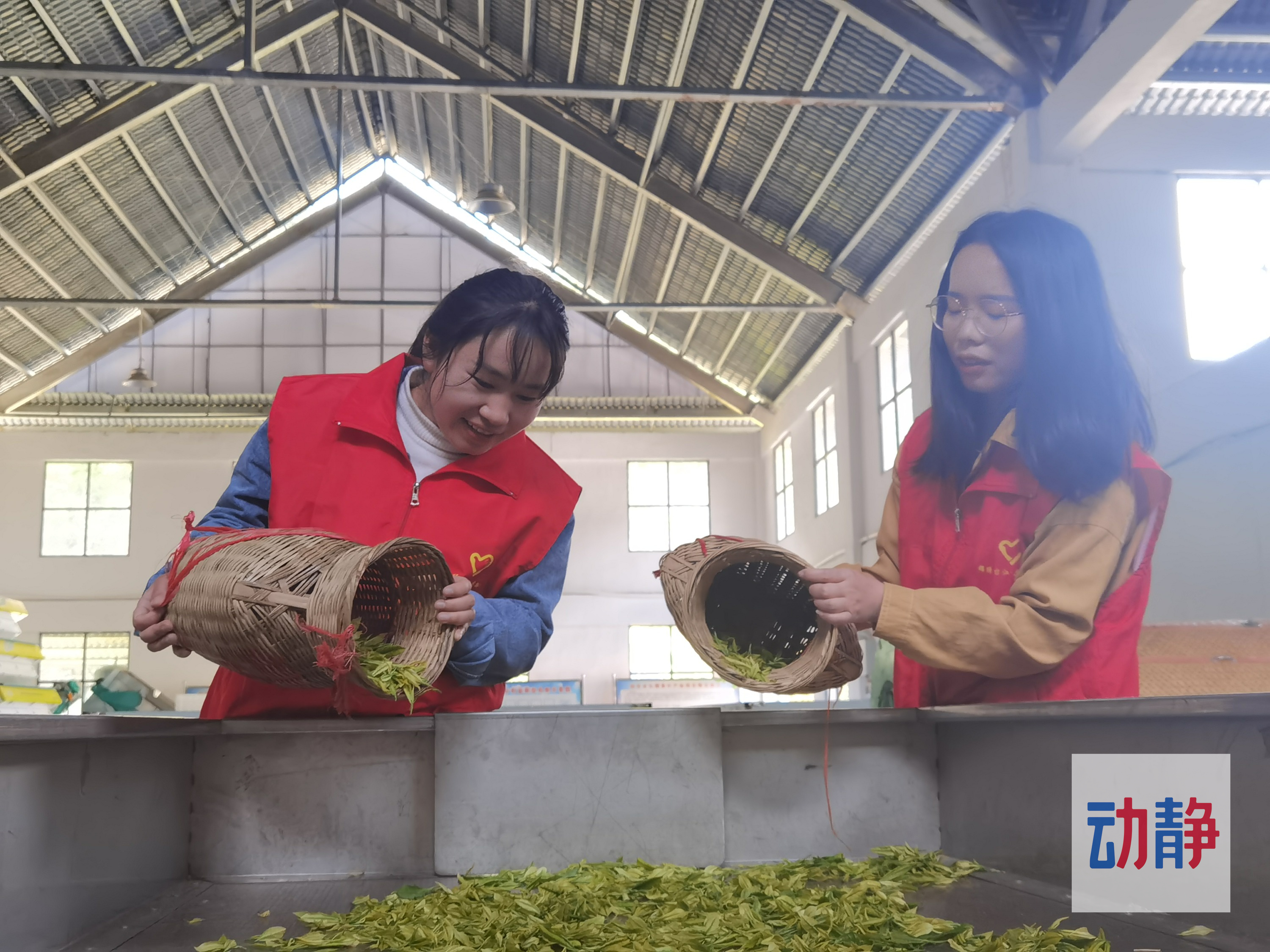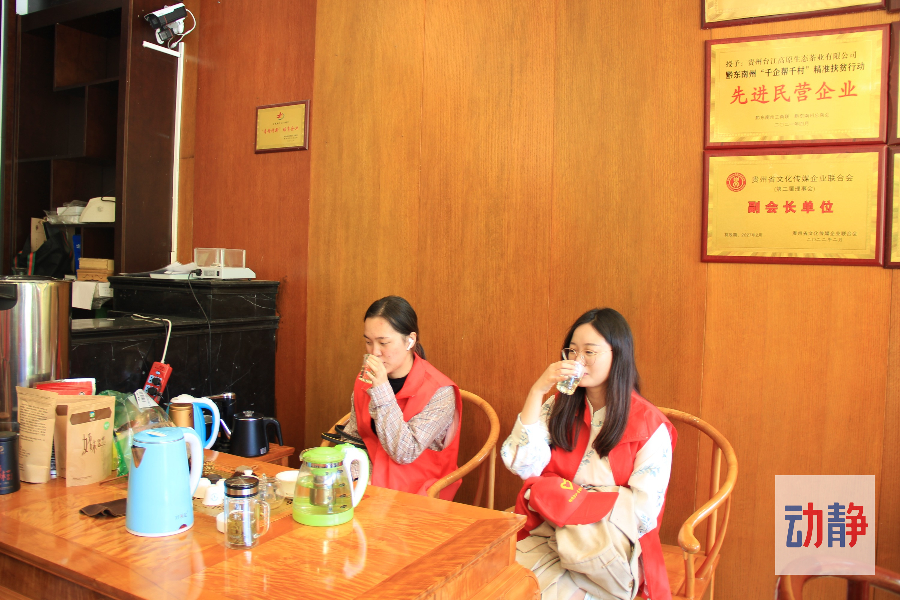 在采茶之前,当地茶农对志愿者进行了采摘技巧培训。随后,志愿者们化身“采茶工”,穿梭于茶树间,小心翼翼地将一片片鲜嫩的芽叶摘下放进背篓,每个环节都一丝不苟。志愿者们还参观了贵州台江高原生态茶叶企业,观看了茶叶制作过程。