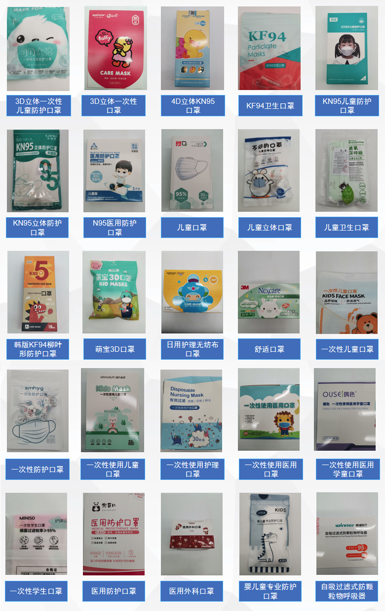 60款儿童口罩,其中平面型口罩31款、柳叶型口罩15款、3D立体型14款;
