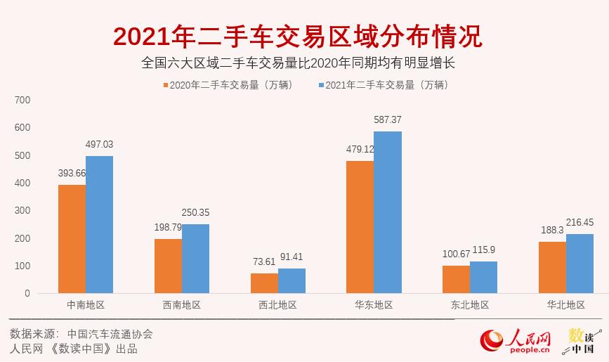 点评:2021年,各区域交易量均有所增长,随着全国经济形势走好,汽车消费需求增加,二手车交易活跃度提升。