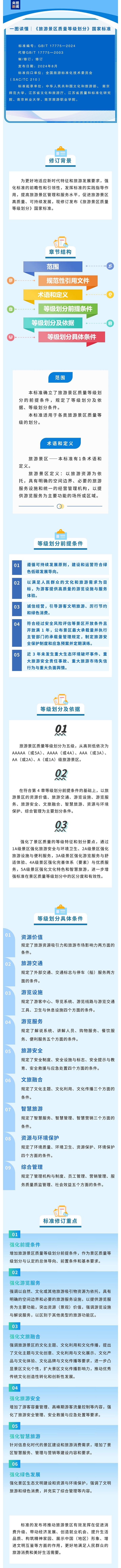 记者今天(10月10日)了解到,市场监管总局(国家标准委)近日发布了《旅游景区质量等级划分》国家标准。将于2025年3月1日起正式实施。该标准确立了旅游景区质量等级划分的前提条件,提出了游览服务、文旅融合、旅游安全、智慧旅游、绿色发展等方面的要求。标准发布实施后,将进一步规范旅游景区质量等级划分各项要求,引导旅游景区树立科学的资源观和发展观,更好满足人民群众的旅游消费和美好生活需要。