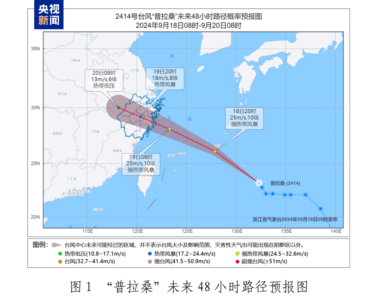 今天夜里移入东海东部海面,明天下午到夜里在浙江沿海登陆(热带风暴级或强热带风暴级,8-10级,20-25米/秒),之后强度逐渐减弱,将对浙江带来明显风雨影响。