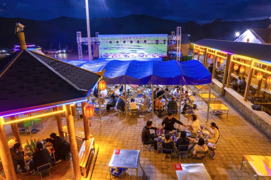 一手抓农业,一手抓文旅。很黑村盘活闲置的宅基地、房屋等资源,建成民宿52间,可接待游客120余人;建设很黑美食广场、标准化骑马场,搭建“百姓大舞台”,通过举办篝火晚会、文艺演出等丰富夜经济业态。