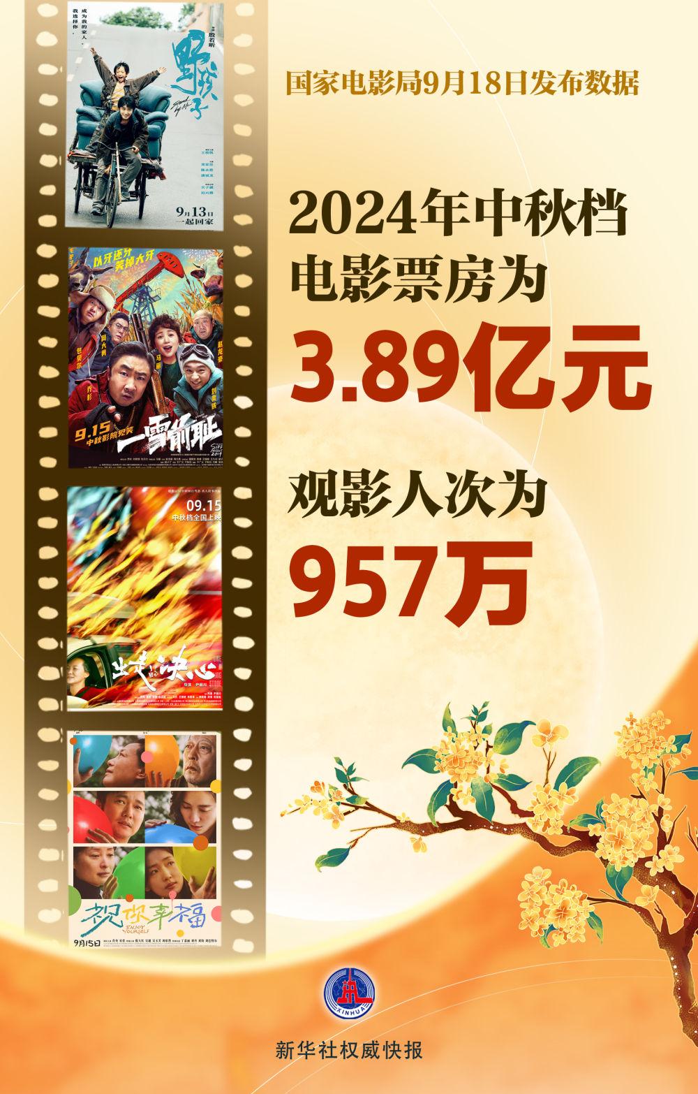 我国2024年中秋档电影票房为3.89亿元