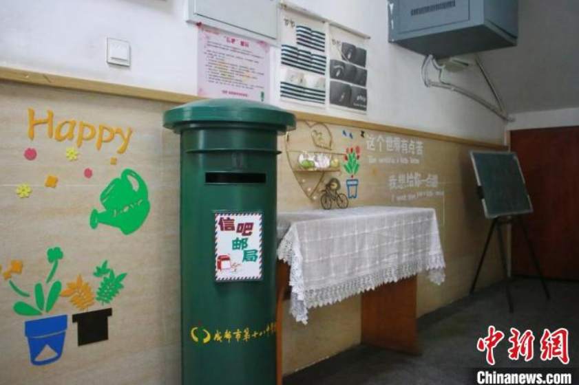 记者5日从成都第十八中学校获悉,在该校楼梯间设有一个“树洞”邮局,邮局旁写着“这个世界有点苦,我想给你一点甜”。有烦恼的学生可以匿名写信,把邮局当成“树洞”,在这里每一封信都有老师的回信,学生根据“暗号”取信。