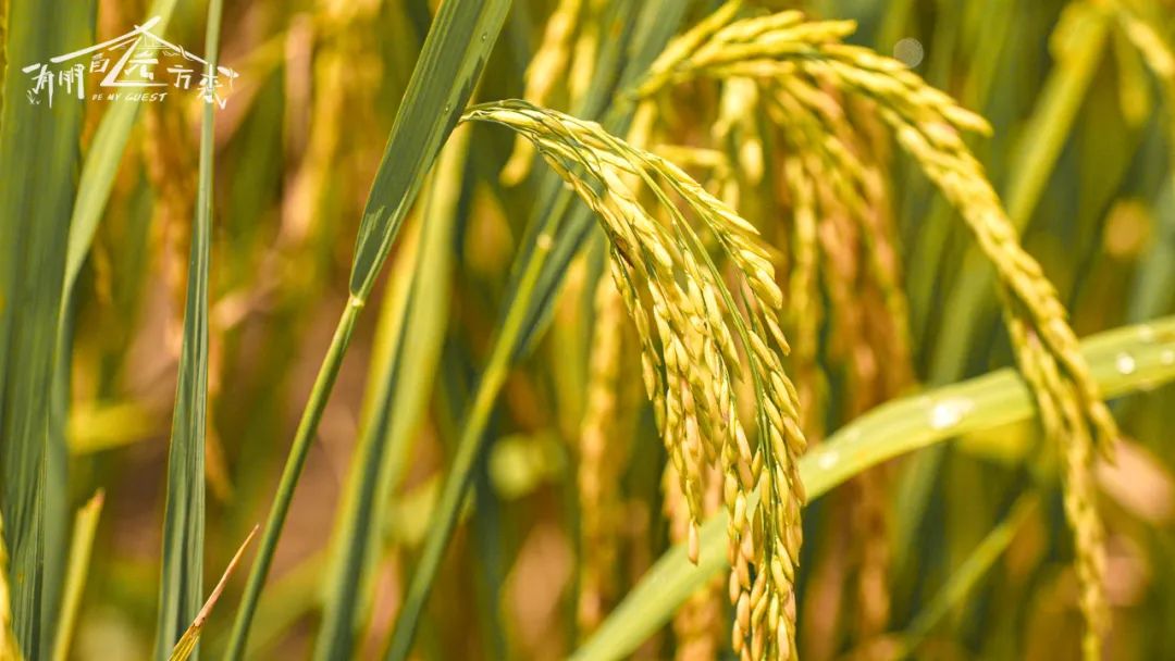 The gorgeous yellow rice ears overflow the fields, and the rice fish jump out of water, like celebrating harvests.