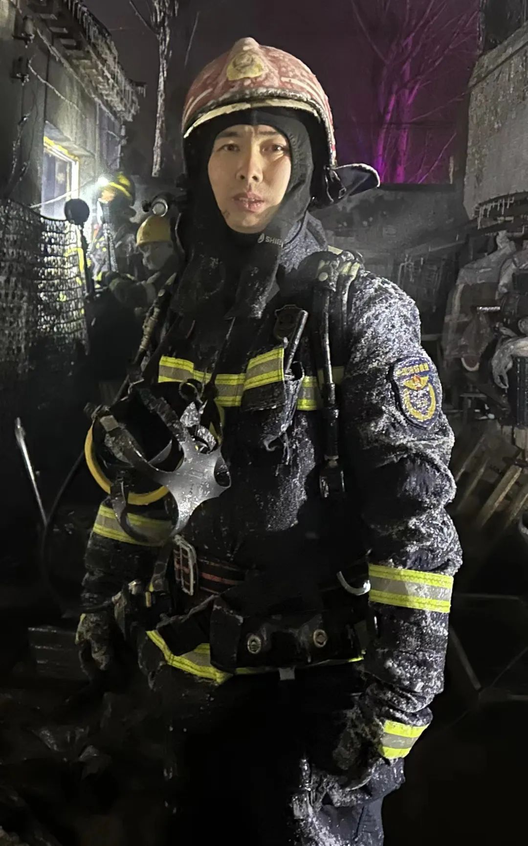 记者获悉,在进行火灾扑救时,消防救援人员避免不了身上沾水。救火后,他们的衣服、手套全都冻硬了,头盔上面也结了冰。他们说:就像身披冰甲一样,这是属于他们的“荣誉”。