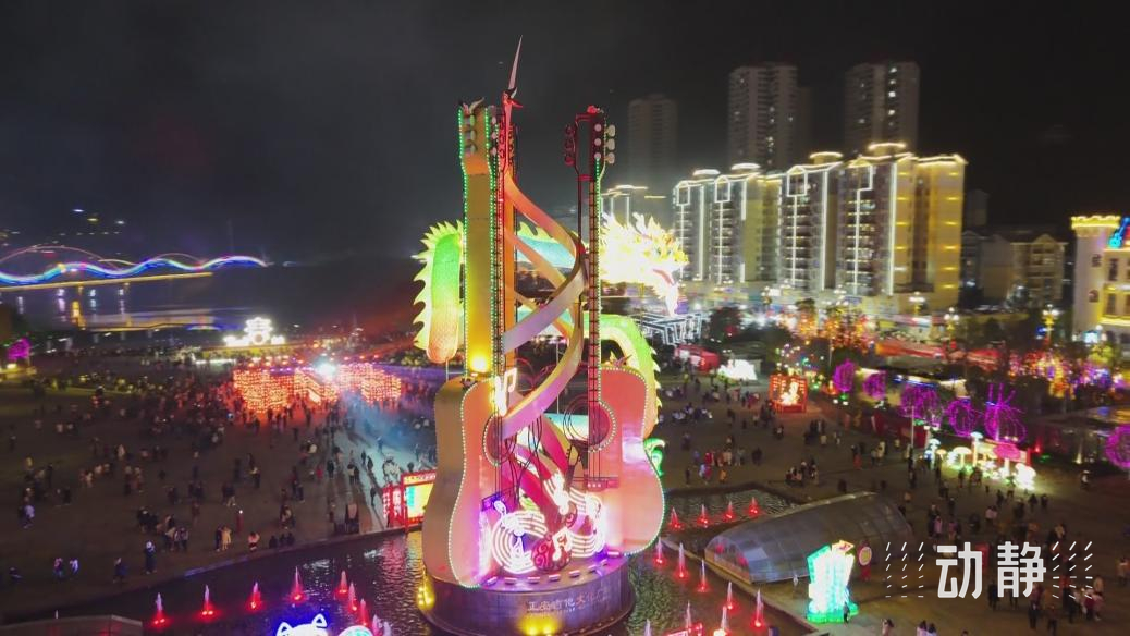 首次以吉他文化为主题打造的2024迎新灯会这几天在遵义正安开幕,20多个璀璨灯组一起点亮了吉他文化广场的夜空,而每一盏花灯,都由来自“天下第一灯”的四川自贡师傅进行制作。活动期间,还有无人机表演、烟花秀、非遗打铁花等精彩演出,让游客享受正安流光溢彩的魅力。
