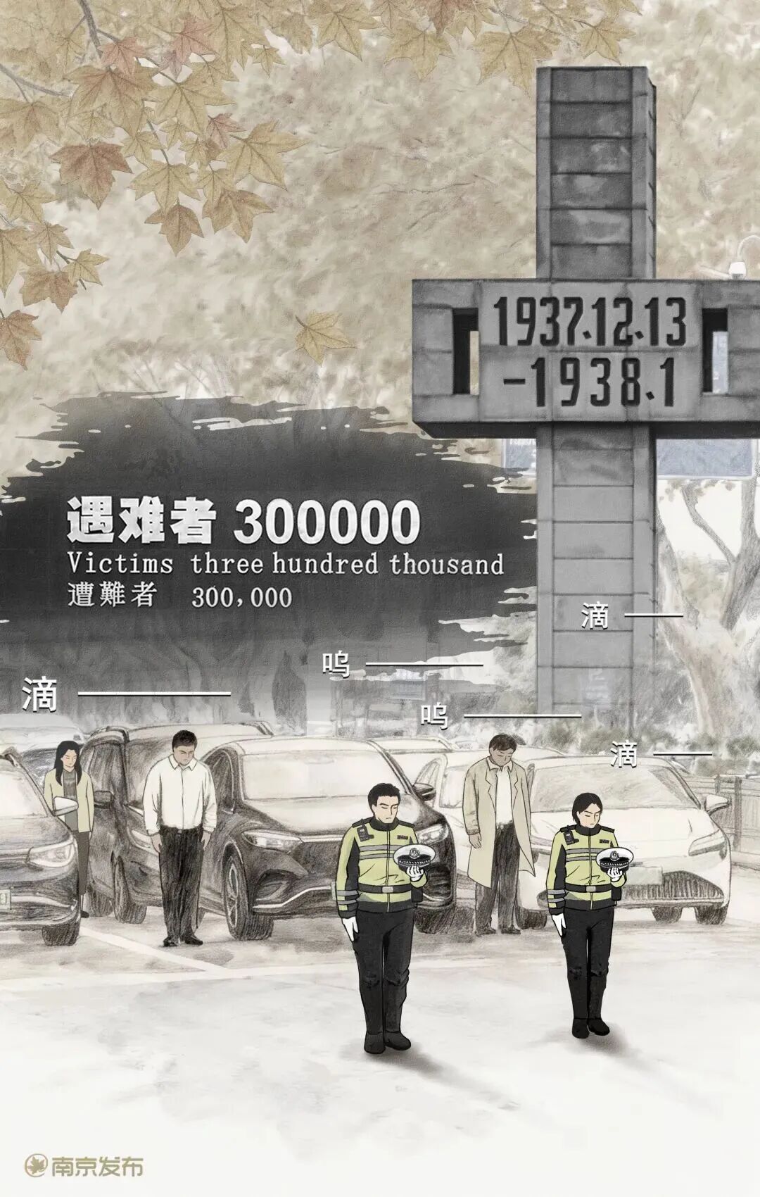 2025年12月13日上午10时,将在侵华日军南京大屠杀遇难同胞纪念馆举行国家公祭仪式。当天10∶01—10∶02防空警报鸣响期间,南京全市主城区范围内道路上(不含高速公路、绕城公路、高架、隧道)行驶的机动车(正在执行紧急任务的特种车辆除外)应当停驶鸣笛致哀,火车、船舶同时鸣笛致哀,道路上的行人、公共场所的人员(正在从事特种生产作业的人员除外)同时就地默哀,致哀1分钟后恢复正常。