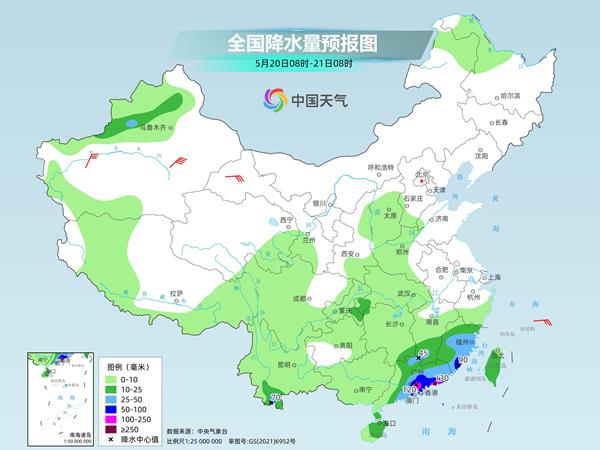 后天,新疆沿天山地区和伊犁河谷、重庆东南部、云南南部、湖南南部、广东大部、福建大部、海南岛、台湾岛等地部分地区有中到大雨,其中,福建东南部、广东中部和南部沿海等地部分地区有暴雨或大暴雨(100~130毫米)。