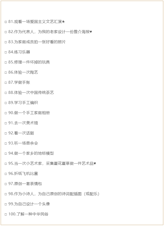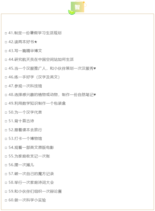 暑假来了,孩子们高兴了,家长们却充满担忧……其实,过暑假也是要讲究方法的,趁现在,不妨和孩子一起规划吧~同时,奉上100种暑期正确打开方式,供规划时参考喔!