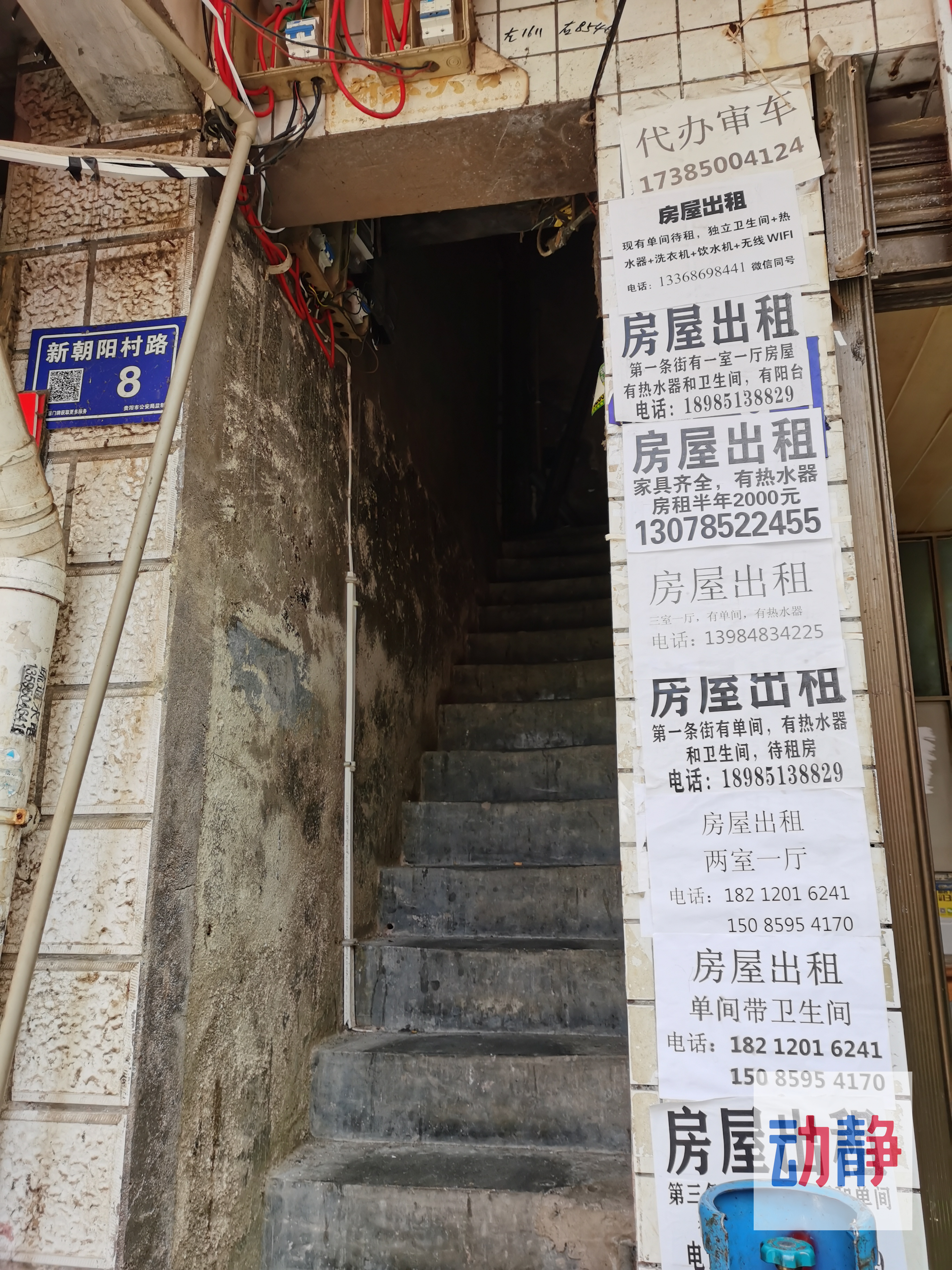 记者致电另一个招租电话时,房东显得有些警惕,详细打听了记者的工作、租房的原因等。这栋自建房楼道昏暗,楼梯间较为狭窄,两个人并行通过都显得困难。对门而开的两个房间距离还不足一米。这位房东还带着记者来到另一栋有“套间”的自建房,所谓套间,也仅是一间20来平方米的通间,做了隔断。