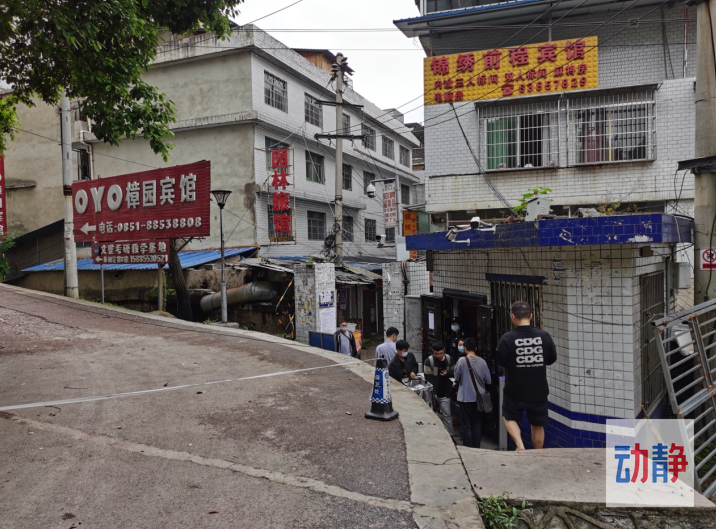 5月10日,记者来到贵阳市花溪区溪北街道新朝阳村。这里与贵州大学北校区仅一墙之隔,居民自建房情况较为普遍。这些楼房大体排成三排,排与排之间的通道约三、四米宽,而相邻楼栋间的墙体多数是“无缝对接”。矮的有三、四层,高的有六、七层,不少房屋存在明显的加建、改建痕迹,多数自建房的一楼开设有餐饮店、便利店,部分自建房被用于出租、开旅社等,许多房屋外墙上张贴着“房屋出租”的广告。