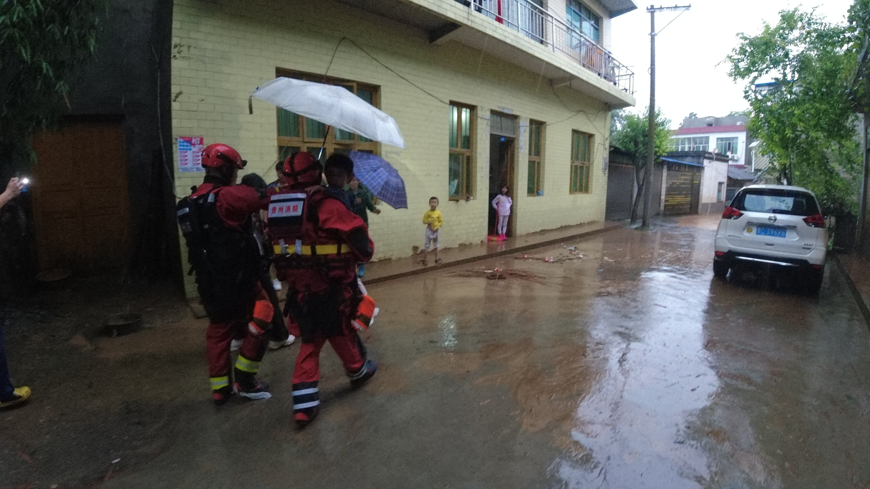 安场镇官井村富强组有房屋被洪水冲垮,共计3栋住宅10人被困。由于水位较高,救援人员无法直接进入房内,只能利用急流专用救生衣上的牛尾挂上漂浮绳,采取“活饵”救援的方式进入房内搜救群众。经过不懈努力,被困的10名群众被转移至安全地带。