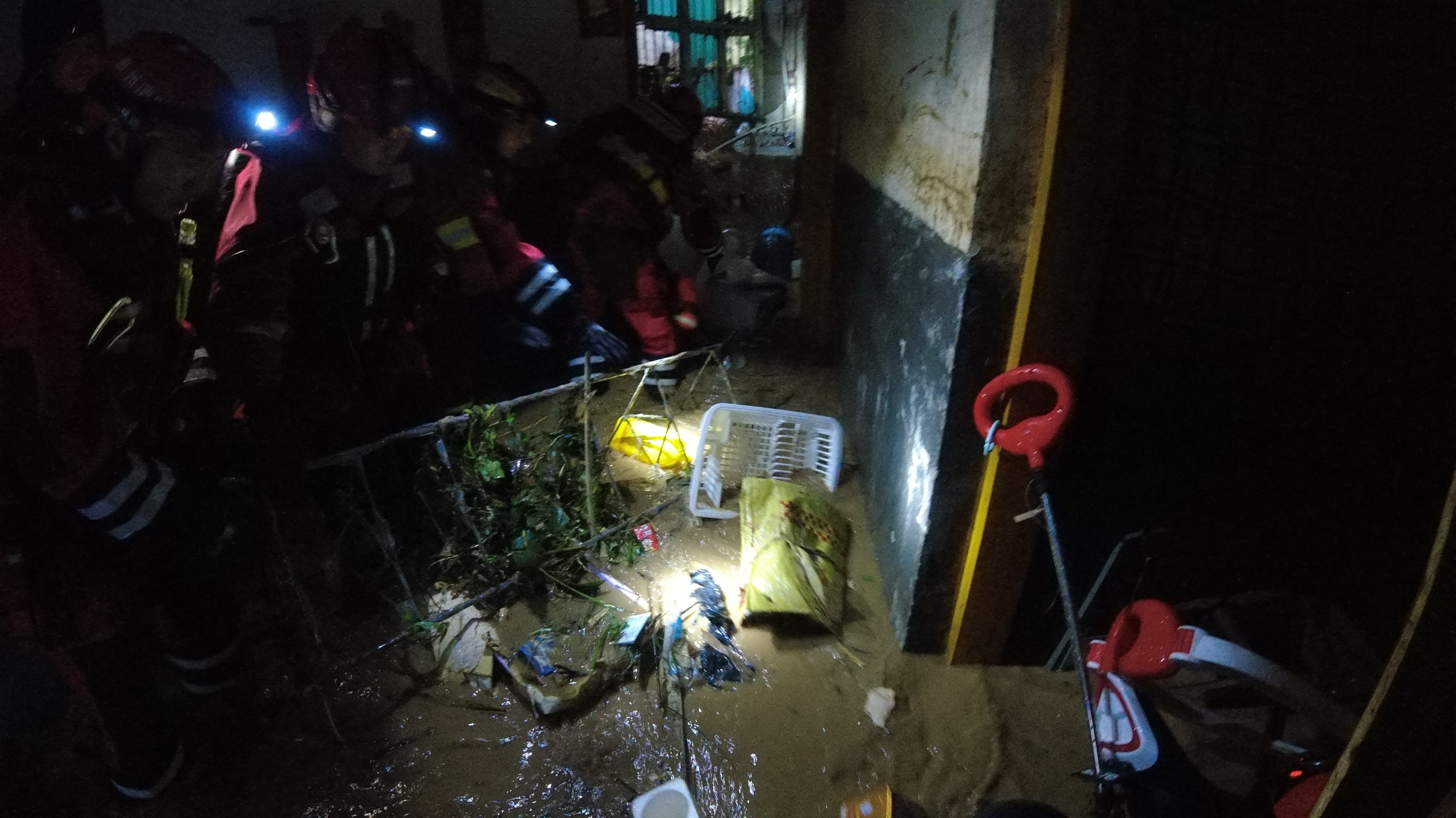2日凌晨5时15分,正安县消防救援大队接到警情,“安场镇官井村富强组有人员被洪水围困”,立即出动3台车21名消防救援人员前往救援,到达安场以后,大队全勤指挥部将救援力量划分为两个救援分队开展救援工作。