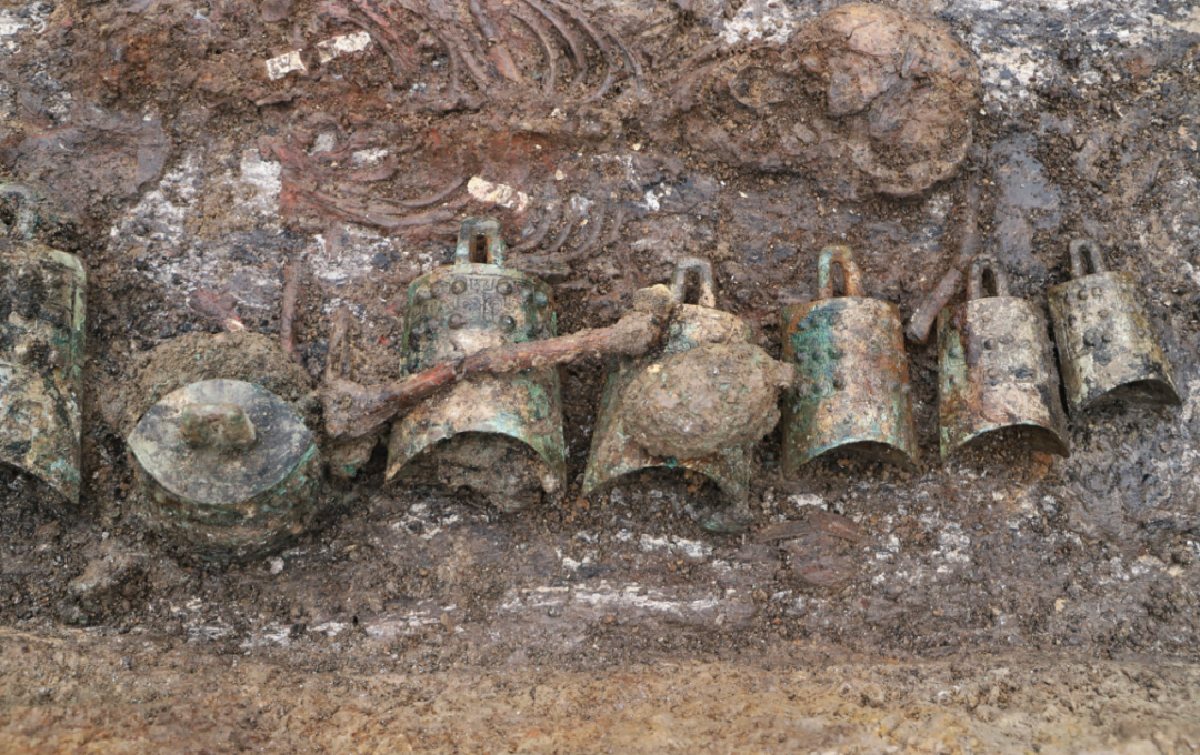此次清理的车马坑,是备受关注的标号为M15的大型墓葬对应的陪葬车马坑。M15是一座春秋时期西北戎人的王级大墓,此前,考古人员在该墓葬发掘出饕餮夔纹铜编钟、编磬等青铜礼器。