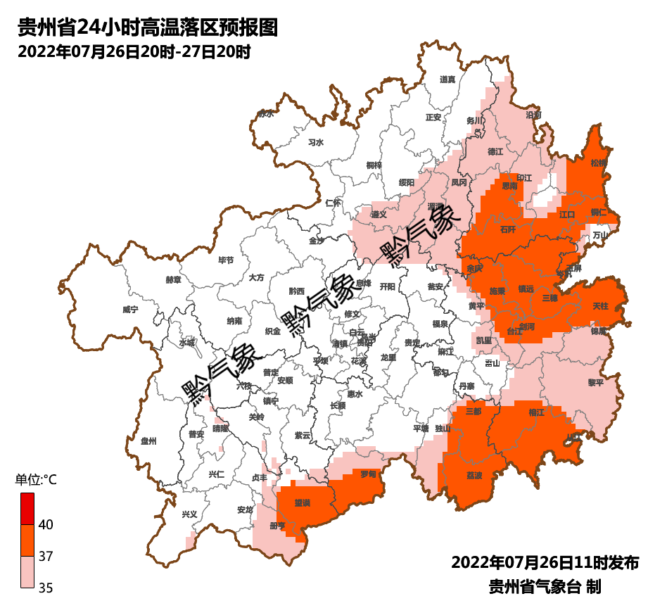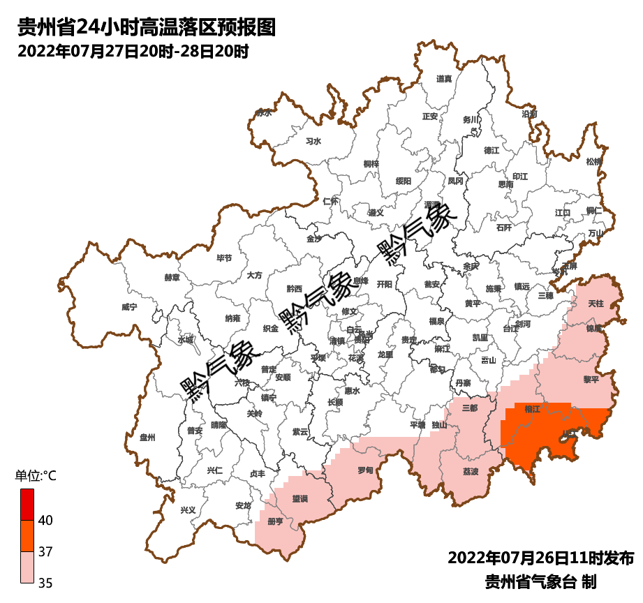 27日夜间到28日白天,全省大部多云转阴天有阵雨或雷雨,中部以西以北地区有中到大雨,局地暴雨,个别乡镇大暴雨,省的南部边缘地区午后有35℃以上高温,局地超过37℃;