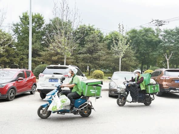 北京市商务局近日发布新版《新冠疫情流行期间外卖配送人员防控指引》,规定外卖配送人员配送过程中必须佩戴N95或KN95口罩。连日来,记者对外卖配送人员佩戴口罩的情况展开调查,发现绝大多数外卖骑手都能认真执行这一规定,不论是送餐上楼,还是飞奔在配送路上,都戴着此类口罩。