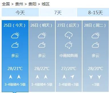 27日,多云转阴天有阵雨或雷雨,雨量中到大雨,局地暴雨;