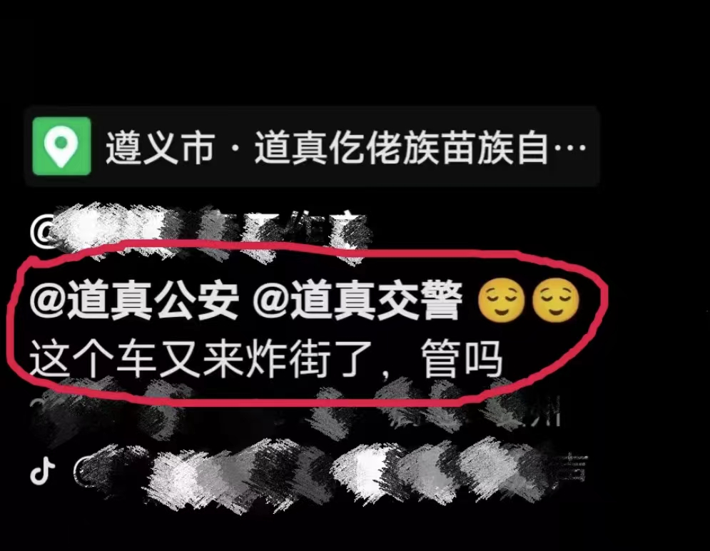 近日,遵义市道真县交警大队收到来自“某音”网友的举报,车辆在城区二转盘附近公然“炸街”居民不堪其扰。