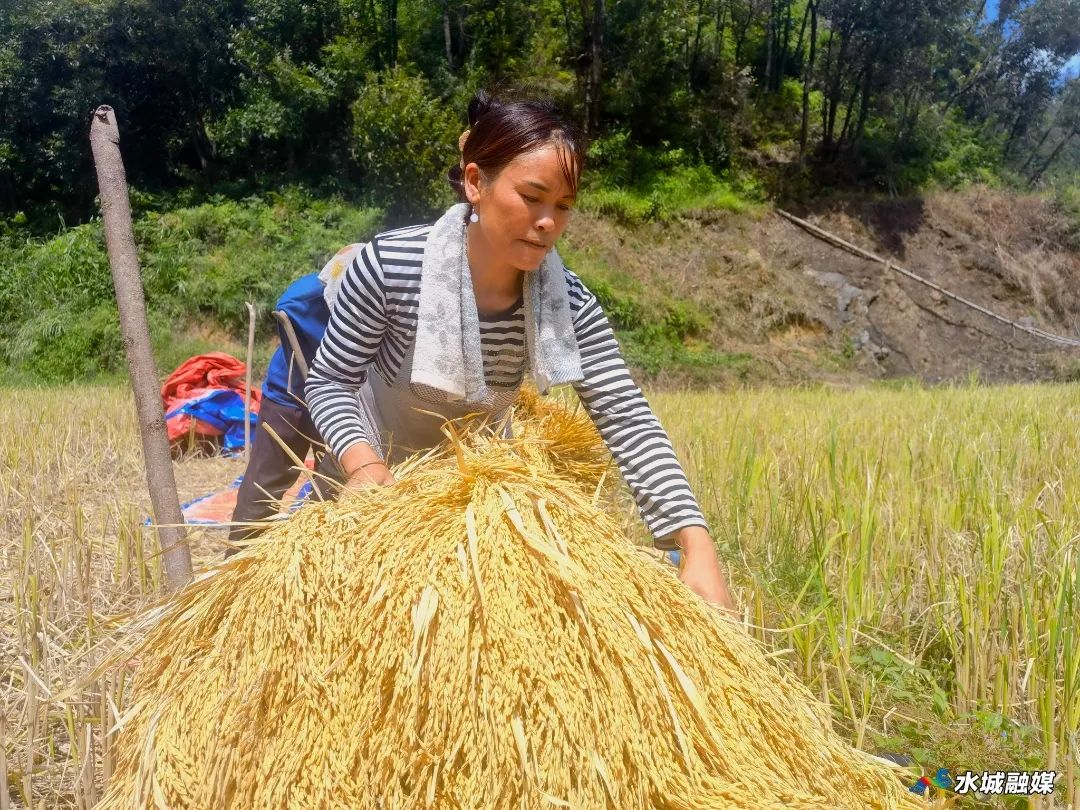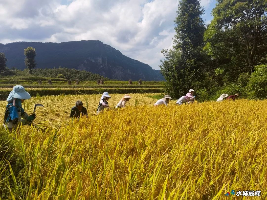 金秋九月,贵州省六盘水市水城区花戛乡天门村今年种植的稻米相继成熟,进入收割时节,当地的布依族村民们纷纷走进田间地头,抢抓晴好天气收割水稻,确保丰收粮食颗粒归仓。
