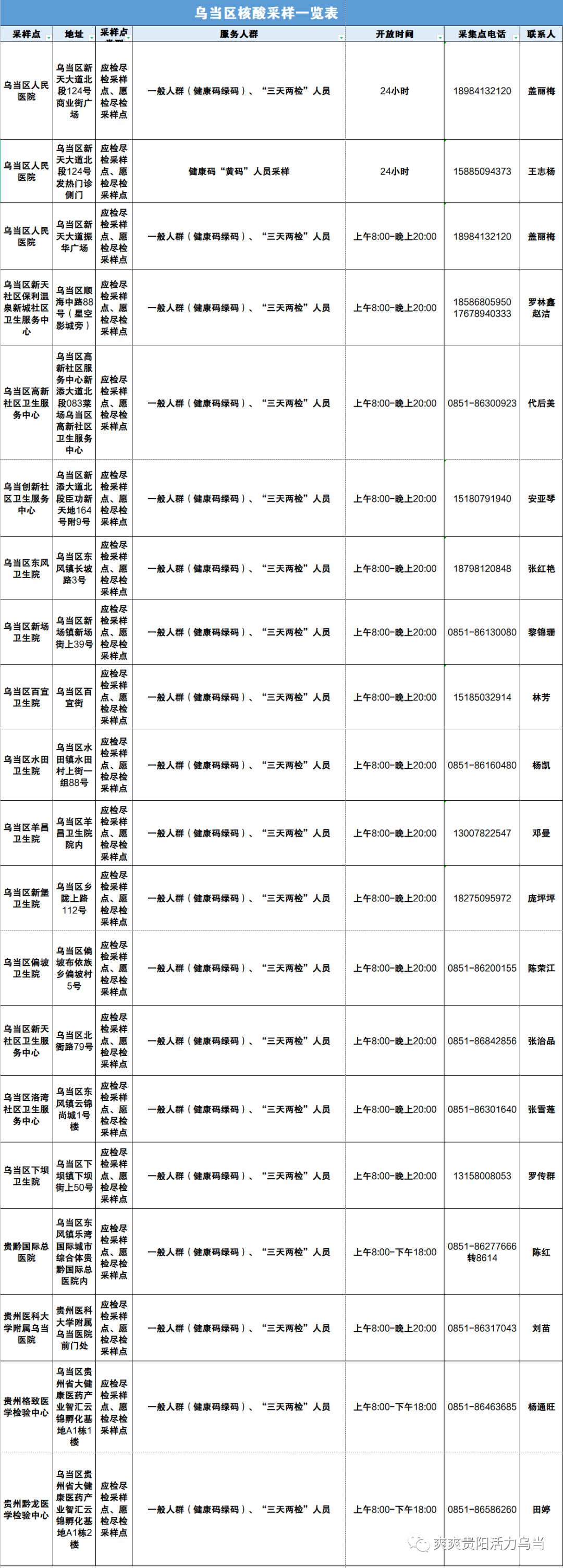 为方便在常态化疫情防控区域的市民查询,“贵阳区势”梳理汇总相关区县的常态化核酸采样点信息。(注:此为动态信息,请关注最新变化。)