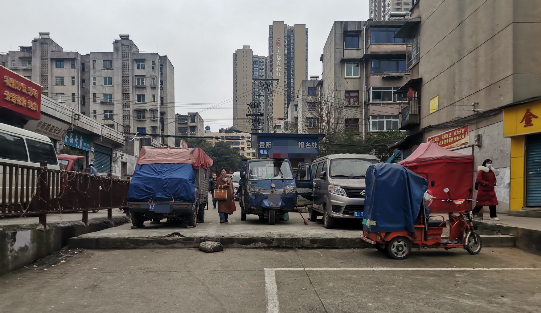 除了占道经营,道路两侧还存在违规的大型广告牌、乱搭乱建,以及马路停车场也是西江巷不能满足车辆通行的原因。